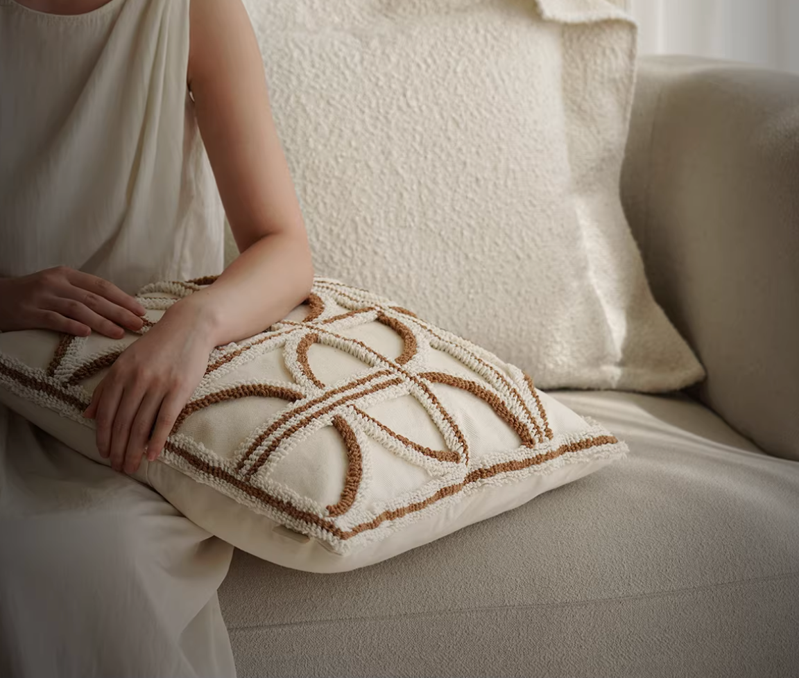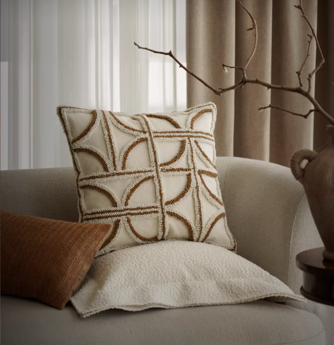 Bring a touch of modern artistry to your sofa or armchair with our Tufted Arch Cushion. Designed for those who appreciate the balance between cozy comfort and striking design, this piece features a sophisticated geometric pattern inspired by mid-century architectural arches.