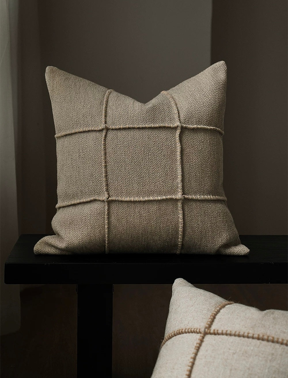 Sutton Stitched Grid Cushion Cover - Taupe